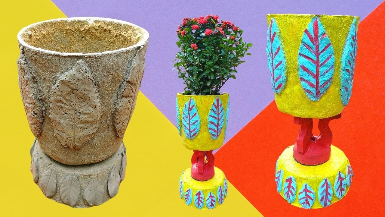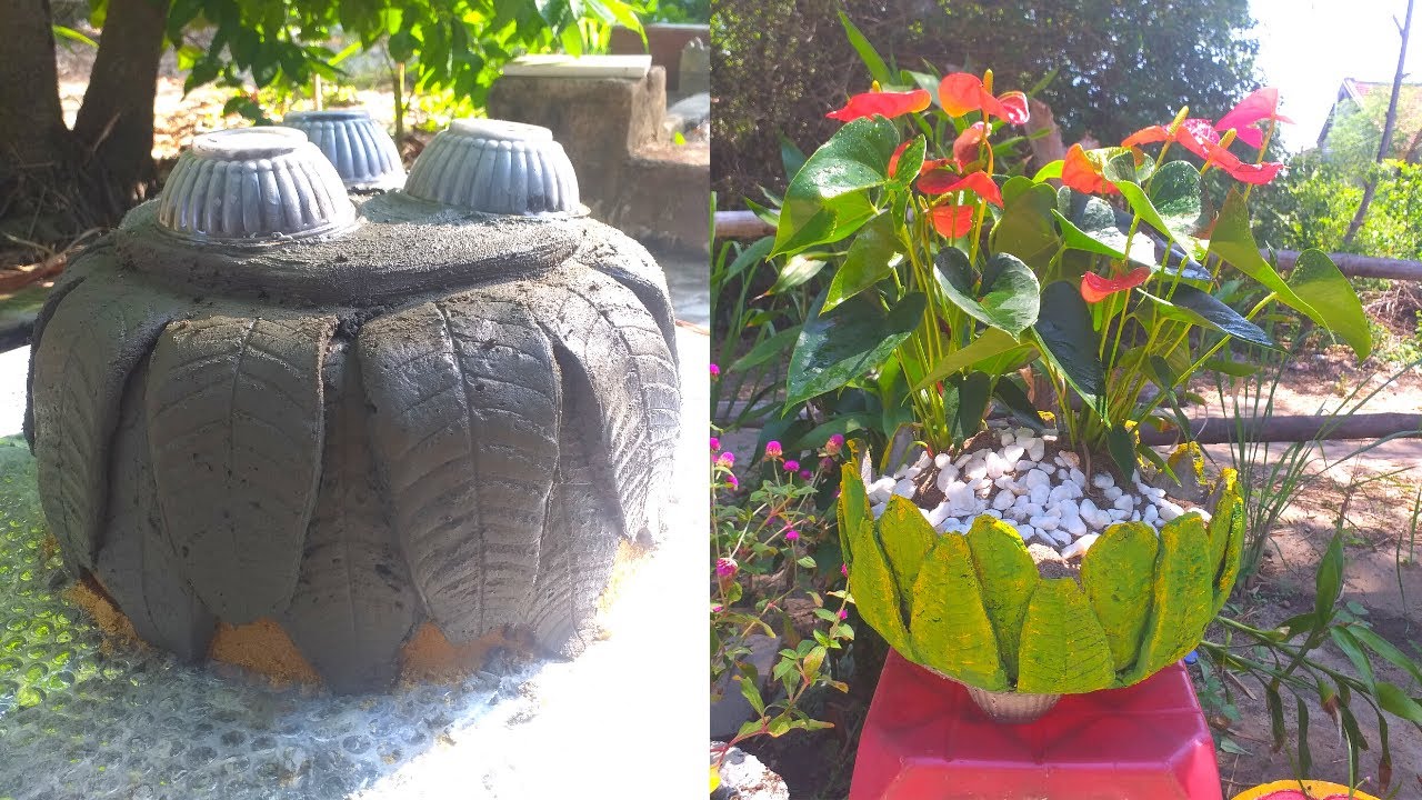 how to make cement pots with leaves